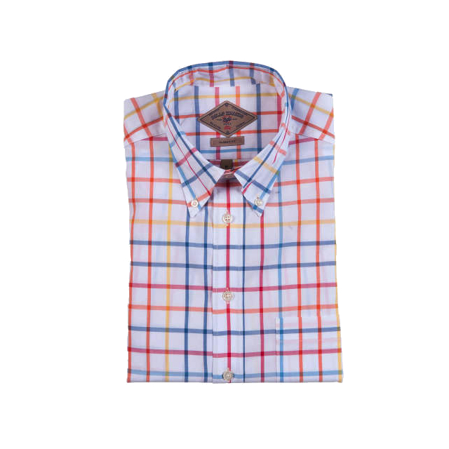 Bills Khakis - Dress Shirts - Savana Windowpane Tangerine Blue